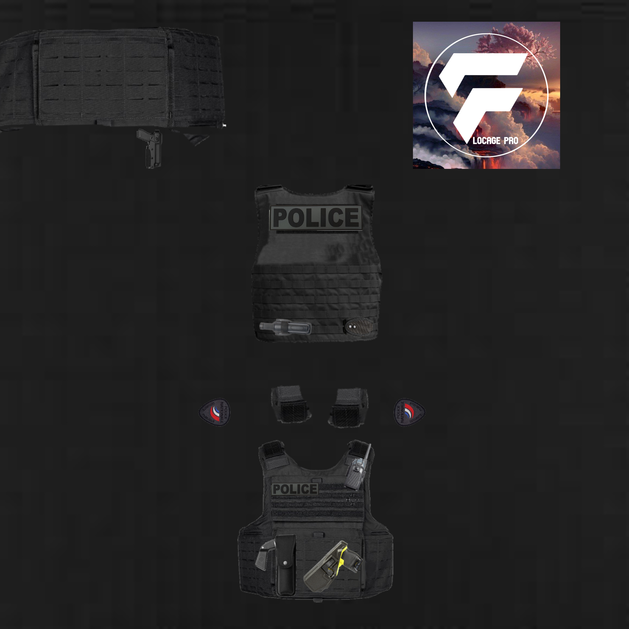 Crédit : La tenue complète ainsi que le gilet par-balles, as comme propriétaire RG-Perf de Rigmo et les insignes de l'unité déminage ainsi que l'affichage arrière "DEMINEUR" appartiennent à Flocage PRO de Ryzox_off.